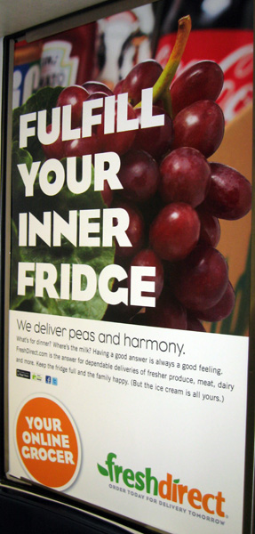 But when I first saw it, I really got excited, because I thought it was actually the set up to an even better joke. See, on the commuter trains, these poster holders are two-sided, and once in awhile someone takes advantage of that format. So, I really wanted the other side of this ad to read, “Its front”, along with a picture of, yes, the front of the car. That would be an ad I would bow down to.
